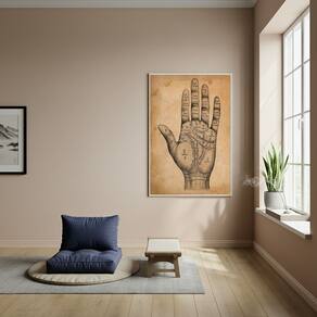Quadro Decorativo Quiromancia - Linhas da Mão - 70x50cm - Cor: Moldura Preta