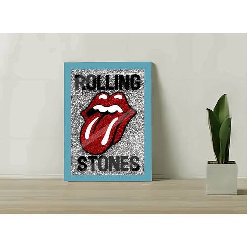 Quadro Decorativo R. Stones Lust Sala Escritório +Vidro - Cor: Azul