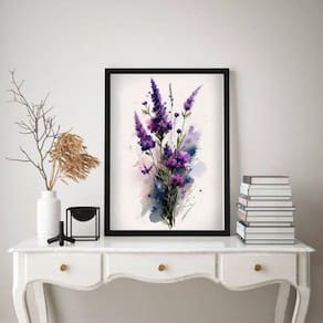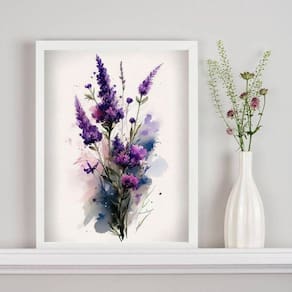 Quadro decorativo ramo de lavanda aquarela 24x18cm - com vidro Moldura: madeira preta Informações do produto tire todas as suas dúvidas no descritivo abaixo: decoração para quarto, sala, cozinha, escritório, área gourmet e muito mais. Chega de paredes vazias medidas - cada peça tem 24x18cm a5 . Material do papel - papel fotográfico brilhante de altíssima resolução acabamento - todos os quadros são acompanhados de vidro para proteção da imagem. - moldura em madeira maciça na cor preta ou branca conforme produto escolhido e pendurador . - os quadros são embalados de forma segura com plástico bolha com camada dupla de acordo com o tamanho dos quadros. Garantia - garantia de 3 meses. Meu quadro chegou. Como posso fixá-lo Você precisa apenas de um martelo e um prego, pois os quadros já vão acompanhados de penduradores. Esta é a forma mais indicada. Como posso limpar meu quadro A limpeza é feita como um móvel comum da sua casa. Apenas um pano seco ou espanador são suficientes para tal Ean: 7890537158021