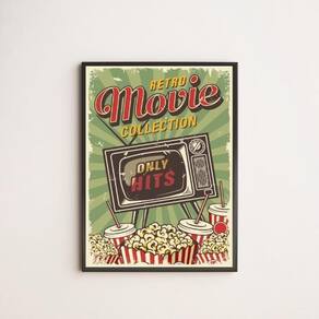 Quadro decorativo retrô movie collection 33x24cm - com vidro Moldura: madeira preta Informações do produto tire todas as suas dúvidas no descritivo abaixo: decoração para quarto, sala, cozinha, escritório, área gourmet e muito mais. Chega de paredes vazias medidas - cada peça tem 33x24cm a4 . Material do papel - papel fotográfico brilhante de altíssima resolução acabamento - todos os quadros são acompanhados de vidro para proteção da imagem. - moldura em madeira maciça na cor preta e pendurador . - os quadros são embalados de forma segura com plástico bolha com camada dupla de acordo com o tamanho dos quadros. - de 3 meses. Meu quadro chegou. Como posso fixá-lo Você precisa apenas de um martelo e um prego, pois os quadros já vão acompanhados de penduradores. Esta é a forma mais indicada. Como posso limpar meu quadro A limpeza é feita como um móvel comum da sua casa. Apenas um pano seco ou espanador são suficientes para tal Marca: Não Informado