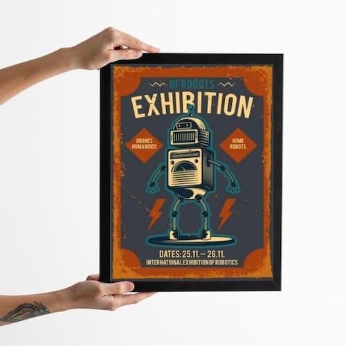 Quadro decorativo robô vintage 24x18cm Cor: moldura branca Informações do produto tire todas as suas dúvidas no descritivo abaixo: decoração para quarto, sala, cozinha, escritório, área gourmet e muito mais. Chega de paredes vazias medidas - cada peça tem 24x18cm a5 . Material do papel - papel fotográfico brilhante de altíssima resolução acabamento - todos os quadros são acompanhados de uma película de acetato para proteção da imagem. - os quadros são embalados de forma segura com plástico bolha com camada dupla de acordo com o tamanho dos quadros. - de 3 meses. Meu quadro chegou. Como posso fixá-lo Você precisa apenas de um martelo e um prego, pois os quadros já vão acompanhados de penduradores. Esta é a forma mais indicada. Caso prefira, você pode utilizar uma fita dupla face neste caso, sugerimos de alta qualidade para evitar que descole e seu quadro caia . Como posso limpar meu quadro A limpeza é feita como um móvel comum da sua casa. Apenas um pano seco ou espanador são suficientes para tal Marca: Não Informado Ean: 7891234548986