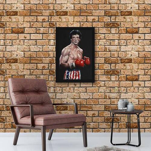 Quadro Decorativo Rocky Balboa Boxe - Tamanho: A4 (20 x 30) / Acabamento: Película de acetato / Moldura: Madeira preta