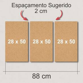 1 INFORMAÇÃO DO PRODUTO: Os Quadros De Parede não precisam de moldura, prontos para pendurar na parede. São feitos em madeira de MDF com adesivos de vinil de alta qualidade de impressão. O corte é eletrônico, feito a laser, o que garante um acabamento perfeito. Altura x Largura - 28 cm x 50 cm cada peça Tamanho total - 84 cm x 50 cm Tamanho total com espaçamento de 2cm entre as placas - 88 cm x 50 cm 2 CUIDADOS: Limpeza: Utilizar Pano úmido somente com água. Utilizar em ambientes internos. Não exponha o produto em Parede com umidade ou luz direta do sol.