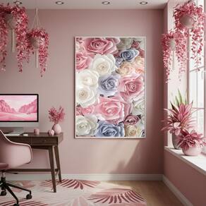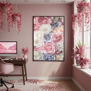 Quadro Decorativo Rosas Tons Pastéis 70x50cm Mold Preta