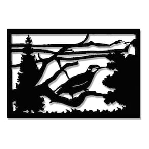 Especificações Técnicas: Medidas: comprimento: 33 cm altura: 3mm largura: 39 cm Material: mdf 3mm Cor: preto Tema: folhas Formas de instalação: basta utilizar fitas dupla face Quantidade: 1 unidade
