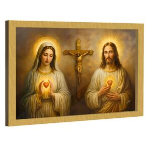 Quadro Decorativo Sagrado Coração de Jesus e Maria Moldura Preta - 150x100cm -
