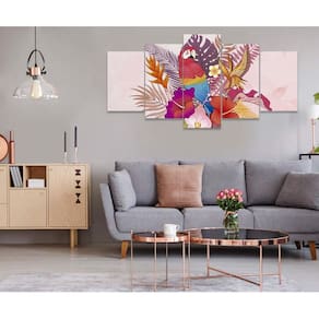 Quadro Decorativo Sala Quarto Escritório Arara Florida Os quadros decorativos são uma tendência e excelente ideia para quem desejar realmente mudar o visual do seu ambiente, deixando ele com a sua cara. São Utilizados para decorar vários ambientes seja um comércio, sua sala, quarto, área de lazer ou escritório, são lindos, leves e fáceis de instalar. Também pode quebrar aquele galho tampando aquelas pequenas imperfeições indesejadas da parede, com um toque super elegante. Decorar o seu ambiente é sempre um momento muito especial. Características do Produto: Tamanho total: 130cm comprimento X 63cm altura Peças menores: 25x40 cm | Peças médias: 25x51 cm | Peça central: 25x63 cm Espaçamento entre as peças: 1 cm a 2 cm Espessura do produto - 2 CM Quadro pronto para pendurar no local desejado. Material e Acabamentos: Tela em Tecido com impressão digital ecológica, de alta tecnologia, Atóxica e sem cheiro, proporcionando imagens de alta qualidade e durabilidade. Bordas com a extensão da própria imagem nas laterais, sendo uma tela painel. Tecido esticado no chassi de madeira e grampeado no verso, com suportes triangulares para a fixação. Um pouco mais sobre o Tecido O tecido é sintético fechado, sua flexibilidade evita que a impressão fique com aparência pigmentada, caso o material seja esticado. É muito utilizado em museus, exposições de arte, eventos, na identificação e principalmente Na decoração de ambientes. Como fixar no local: Fixação feita de forma tradicional, basta colocar dois parafusos ou dois pregos de acordo com os engates do quadro, Deixando espaçamento entre as peças de 1,5 CM ou até no máximo 2,5 CM. Limpeza após fixação: Para a limpeza basta apenas um espanador ou pano macio, sem conter elementos químicos. Objetos/móveis ilustrativos da imagens não inclusos somente o quadro. O Produto pode de ocorrer de ter uma leve diferença de tom de cor da que esta no monitor do seu computador. O Produto é produzido e postado em até 3 dias úteis após a confirmação do pagamento.
