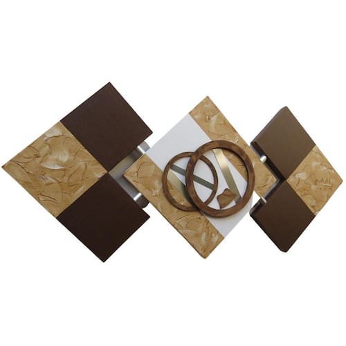 Dimensões: 120x57cm - 4 cm de espessura. Quadro formado por 3 painéis em forma de losango, interligados por estrutura de alumínio. Painel moderno decorativo, pintura acrílica, com textura e apliques em mdf.Cor: tabaco e tons pastéis. Obs: este modelo de quadro será enviado, desmontado desacoplados as 3 partes , devido ao tamanho do quadro. Não se preocupe, é fácil de montar os parafusos já irão no lugar. Coloque em cima de uma mesa, voltado o fundo do quadro para cima, unifique as partes e aperte os parafusos com um chave de boca, ou um alicate. Marca: Viva Quadro