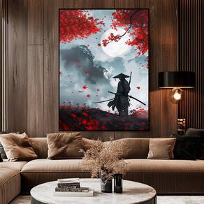 Quadro Decorativo Samurai Ásia Moldura Preta - 118x78cm -