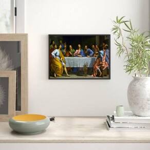 Quadro decorativo santa ceia 33x24cm - com vidro Moldura: madeira preta
