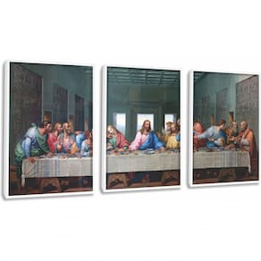 Quadro Decorativo Santa Ceia Com Moldura Branco