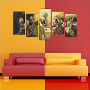 Quadro mosaico com 5 peças Tamanho total 127 cm X 63 cm colocado na parede com espaçamento de 3 cm entre cada peça. Tamanhos Específico Dos Quadros 4 quadros 23 cm x 46 cm 1 quadro 23 cm x 63 cm Qualidade Do Quadro / Impressão e Acabamento - Qualidade Fotográfica Da Imagem. - Material: Quadros impressos em adesivo com qualidade fotográfica, aplicado em MDF com espessura de 12 mm, com acabamentos laterais em preto fosco. - Quadro pronto para colocação na parede. Conteúdo da embalagem: Quadro completo com 5 peças.