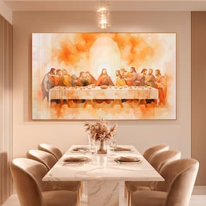Quadro Decorativo Santa Ceia Tons Neutros Borda Infinita - 150x75 -