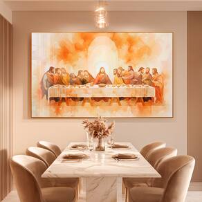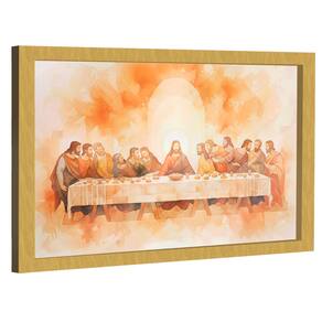 Quadro Decorativo Santa Ceia Tons Neutros Moldura Dourada - 90x45 -