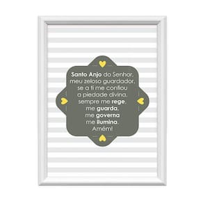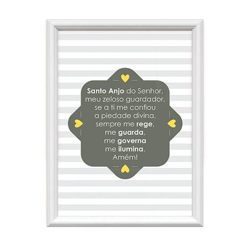 Quadro Decorativo Santo Anjo do Senhor Listrado Amarelo 34x44cm