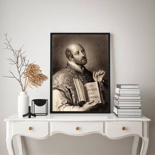 Quadro decorativo santo inácio de loyola 24x18cm Moldura: madeira preta Informações do produto tire todas as suas dúvidas no descritivo abaixo: decoração para quarto, sala, cozinha, escritório, área gourmet e muito mais. Chega de paredes vazias medidas - cada peça tem 24x18cm a5 . Material do papel - papel fotográfico brilhante de altíssima resolução acabamento - todos os quadros são acompanhados de uma película de acetato para proteção da imagem. - os quadros são embalados de forma segura com plástico bolha com camada dupla de acordo com o tamanho dos quadros. Garantia - garantia de 3 meses. Meu quadro chegou. Como posso fixá-lo Você precisa apenas de um martelo e um prego, pois os quadros já vão acompanhados de penduradores. Esta é a forma mais indicada. Caso prefira, você pode utilizar uma fita dupla face neste caso, sugerimos de alta qualidade para evitar que descole e seu quadro caia . Como posso limpar meu quadro A limpeza é feita como um móvel comum da sua casa. Apenas um pano seco ou espanador são suficientes para tal Ean: 7890245960374