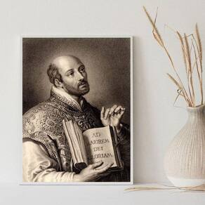 Quadro decorativo santo inácio de loyola 45x34cm Moldura: madeira branca Informações do produto tire todas as suas dúvidas no descritivo abaixo: decoração para quarto, sala, cozinha, escritório, área gourmet e muito mais. Chega de paredes vazias. Medidas - cada peça tem 45x34cm a3 . Material do papel - papel fotográfico brilhante de altíssima resolução acabamento - todos os quadros são acompanhados de uma película de acetato para proteção da imagem. - os quadros são embalados de forma segura com plástico bolha com camada dupla de acordo com o tamanho dos quadros. Garantia - garantia de 3 meses. Meu quadro chegou. Como posso fixá-lo Você precisa apenas de um martelo e um prego, pois os quadros já vão acompanhados de penduradores. Esta é a forma mais indicada. Caso prefira, você pode utilizar uma fita dupla face neste caso, sugerimos de alta qualidade para evitar que descole e seu quadro caia . Como posso limpar meu quadro A limpeza é feita como um móvel comum da sua casa. Apenas um pano seco ou espanador são suficientes para tal Ean: 7894696573060