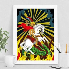 O Quadro Decorativo São Jorge Fundo Colorido é perfeito para dar um toque especial na decoração de diversos ambientes, como quarto, sala, cozinha, escritório e área gourmet. Com medidas de 45x34cm A3 , esse quadro é feito em papel fotográfico brilhante de altíssima resolução, proporcionando uma imagem nítida e de qualidade.