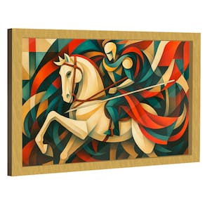 Quadro Decorativo São Jorge em Abstrato Moldura Dourada e Vidro - 180x105cm -