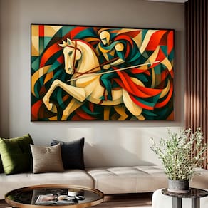 Quadro Decorativo São Jorge em Abstrato Moldura Preta e Vidro - 60x40cm -