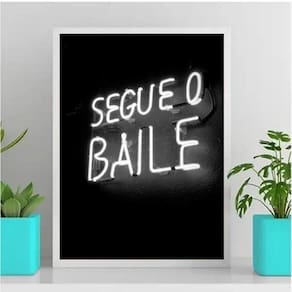Quadro decorativo segue o baile 45x34cm Moldura: madeira branca Informações do produto tire todas as suas dúvidas no descritivo abaixo: decoração para quarto, sala, cozinha, escritório, área gourmet e muito mais. Chega de paredes vazias. Medidas - cada peça tem 45x34cm a3 . Material do papel - papel fotográfico brilhante de altíssima resolução acabamento - todos os quadros são acompanhados de uma película de acetato para proteção da imagem. - os quadros são embalados de forma segura com plástico bolha com camada dupla de acordo com o tamanho dos quadros. Garantia - garantia de 3 meses. Meu quadro chegou. Como posso fixá-lo Você precisa apenas de um martelo e um prego, pois os quadros já vão acompanhados de penduradores. Esta é a forma mais indicada. Caso prefira, você pode utilizar uma fita dupla face neste caso, sugerimos de alta qualidade para evitar que descole e seu quadro caia . Como posso limpar meu quadro A limpeza é feita como um móvel comum da sua casa. Apenas um pano seco ou espanador são suficientes para tal Ean: 7893643903721