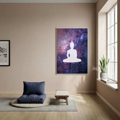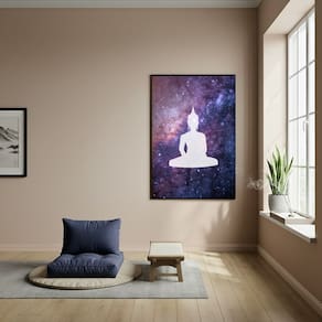 Quadro Decorativo Silhueta de Buda - Galáxia - 70x50cm - Cor: Moldura Branca