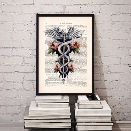 Quadro decorativo símbolo medicina- floral 33x24cm - com vidro