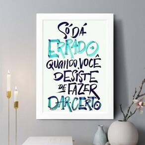 Quadro decorativo só dá errado quando você desiste 24x18cm Cor: moldura preta Informações do produto tire todas as suas dúvidas no descritivo abaixo: decoração para quarto, sala, cozinha, escritório, área gourmet e muito mais. Chega de paredes vazias medidas - cada peça tem 24x18cm a5 . Material do papel - papel fotográfico brilhante de altíssima resolução acabamento - todos os quadros são acompanhados de uma película de acetato para proteção da imagem. - os quadros são embalados de forma segura com plástico bolha com camada dupla de acordo com o tamanho dos quadros. Garantia - garantia de 3 meses. Meu quadro chegou. Como posso fixá-lo Você precisa apenas de um martelo e um prego, pois os quadros já vão acompanhados de penduradores. Esta é a forma mais indicada. Caso prefira, você pode utilizar uma fita dupla face neste caso, sugerimos de alta qualidade para evitar que descole e seu quadro caia . Como posso limpar meu quadro A limpeza é feita como um móvel comum da sua casa. Apenas um pano seco ou espanador são suficientes para tal