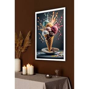 Quadro Decorativo Sorveteria Sorvete Colorido - 70x50cm - Cor: Moldura Preta