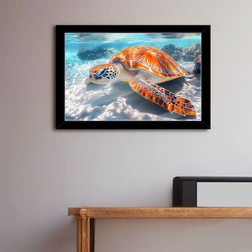 Descrição do produto: Adicione um toque de serenidade ao seu espaço com este quadro decorativo de tartaruga marinha. Com dimensões de 33x25 cm e acabamento em vidro, é perfeito para escritórios, salas de estar ou qualquer ambiente que precise de um toque de natureza e elegância. Transforme seu ambiente com esta peça única e inspiradora! Benefícios:Durabilidade: Moldura resistente e vidro que protege contra poeira e danosEstilo: Adiciona beleza e personalidade ao seu espaço, criando um ambiente perfeito.Facilidade: Pronto para pendurar, sem necessidade de montagem Características:01 Peça(s)Com vidro.Moldura feita de madeira maciça disponíveis nas cores:Preta, Branca, Rosa e Azul TurquesaImagem A4 de alta qualidade protegida contra umidade. Dimensões:Moldura: 25 cm L. 33,7 cm AlturaImagem: 21 cm L. 30 cm AlturaVidro: 0,3 mm Espessura Marca: Estação Vest
