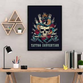 Quadro decorativo tatoo convention 24x18cm Moldura: madeira preta Informações do produto tire todas as suas dúvidas no descritivo abaixo: decoração para quarto, sala, cozinha, escritório, área gourmet e muito mais. Chega de paredes vazias medidas - cada peça tem 24x18cm a5 . Material do papel - papel fotográfico brilhante de altíssima resolução acabamento - todos os quadros são acompanhados de uma película de acetato para proteção da imagem. - moldura em madeira maciça na cor branca e pendurador móvel que pode ser retirado facilmente caso deseje fixar com fita dupla face. - os quadros são embalados de forma segura com plástico bolha com camada dupla de acordo com o tamanho dos quadros. - de 3 meses prazo de envio pedimos 24 horas úteis no máximo para enviar seu pedido após o envio, segue os prazos normais dos correios, cerca de 7 dias úteis exceto para norte e nordeste, que pode ser de até 14 dias úteis. Em diversas cidades, este prazo normalmente é reduzido, mas depende do prazo dos correios. Meu quadro chegou. Como posso fixá-lo Você precisa apenas de um martelo e um prego, pois os quadros já vão acompanhados de penduradores. Esta é a forma mais indicada. Caso prefira, você pode utilizar uma fita dupla face neste caso, sugerimos de alta qualidade para evitar que descole e seu quadro caia . Como posso limpar meu quadro A limpeza é feita como um móvel comum da sua casa. Apenas um pano seco ou espanador são suficientes para tal