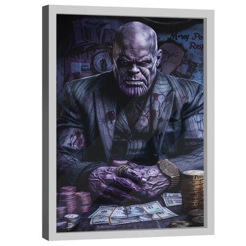 Quadro Decorativo Thanos Negociador Moldura Branca e Vidro - 150x100cm -