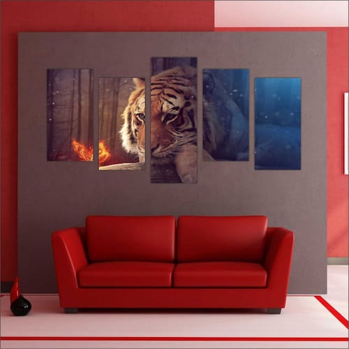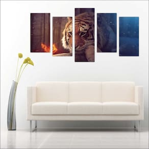Quadro mosaico com 5 peças Tamanho total 127 cm X 63 cm colocado na parede com espaçamento de 3 cm entre cada peça. Tamanhos Específico Dos Quadros 4 quadros 23 cm x 46 cm 1 quadro 23 cm x 63 cm Qualidade Do Quadro / Impressão e Acabamento - Qualidade Fotográfica Da Imagem. - Material: Quadros impressos em adesivo com qualidade fotográfica, aplicado em MDF com espessura de 12 mm, com acabamentos laterais em preto fosco. - Quadro pronto para colocação na parede. Conteúdo da embalagem: Quadro completo com 5 peças. Ean: 7599681870963
