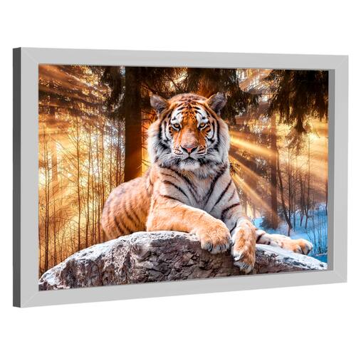 Quadro Decorativo Tigre Iluminado Moldura Branca - 60x40cm -