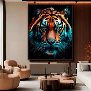 Quadro Decorativo Tigre Majestoso Variação Moldura Preta - 118x78cm -