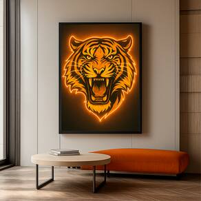 Quadro Decorativo Tigre Neon Amarelo Moldura Dourada - 118x78cm -