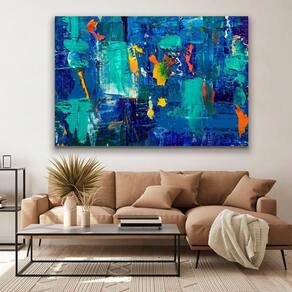 QUADRO DECORATIVO TINTA ABSTRATO AZUL G (118 x 78) S/ Moldura -