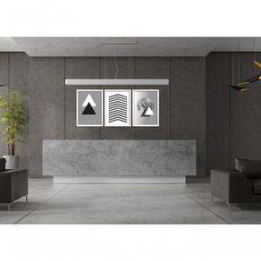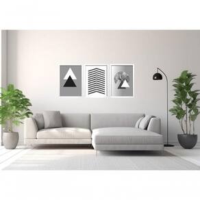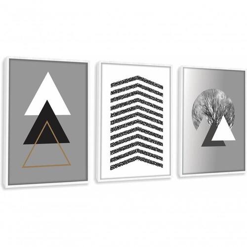 Quadro Decorativo Triângulos árvore Cinza Com Moldura Branco