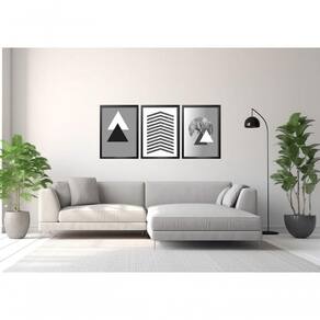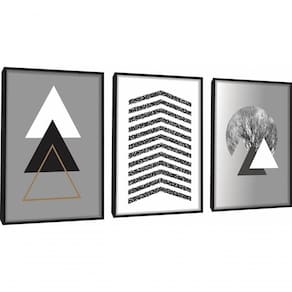 Quadro Decorativo Triângulos árvore Cinza Com Moldura Preto