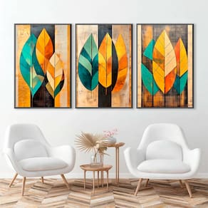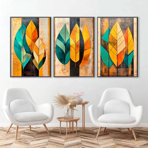 Quadro Decorativo Trio Abstrato Botânico Borda Infinita - 60x40cm -