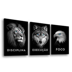 Quadro Decorativo Trio Foco, Disciplina e Execução Premium Borda Infinita - 118x78cm -