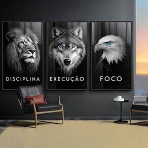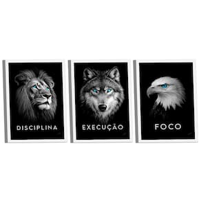 Quadro Decorativo Trio Foco, Disciplina e Execução Premium Moldura Branca - 118x78cm -