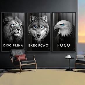Quadro Decorativo Trio Foco, Disciplina e Execução Premium Moldura Branca - 84x54cm -