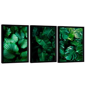 Quadro Decorativo Trio Folhas Verdes Borda Infinita - 60x40cm -