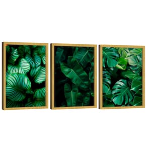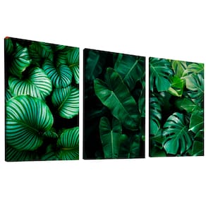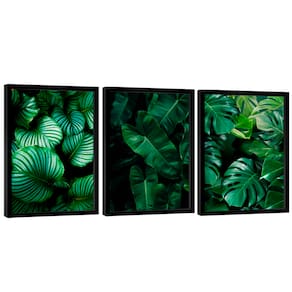 Quadro Decorativo Trio Folhas Verdes Moldura Preta - 84x54cm -