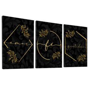 Quadro Decorativo Trio Gratidão, Fé e Amor Moldura Dourada - 118x78cm -