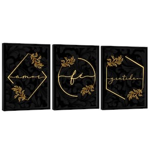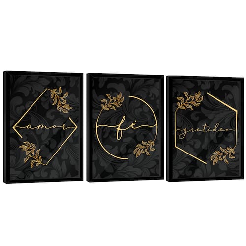 Quadro Decorativo Trio Gratidão, Fé e Amor Moldura Preta e Vidro - 60x40cm -