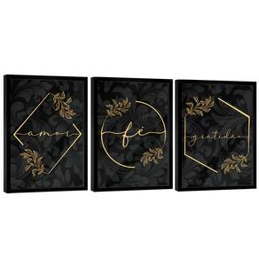 Quadro Decorativo Trio Gratidão, Fé e Amor Moldura Preta e Vidro - 118x78cm -