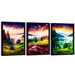 Quadro Decorativo Trio Paisagem Natural Moldura Branca - 84x54cm -
