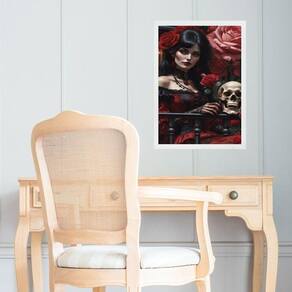 Quadro decorativo umbanda rosa caveira 45x34cm